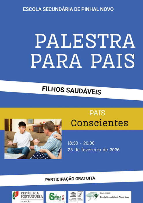 A Escola Secundária de Pinhal Novo e o PESES promove, no próximo dia 23 de fevereiro de 2026, entre as 18:30 e as 20:00, nas instalações da escola, a palestra «Pais Conscientes, Filhos Saudáveis»