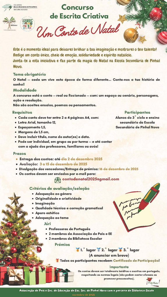 A APESPN em parceria com a Biblioteca da ESPN lança concurso de escrita criativa apelando à criatividade dos seus alunos numa época que se avizinha mágica como é o NATAL!