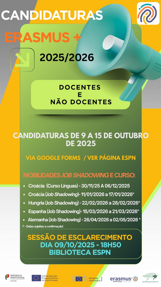 A coordenação Erasmus+ da ESPN está disponível para esclarecimentos adicionais, se necessário.